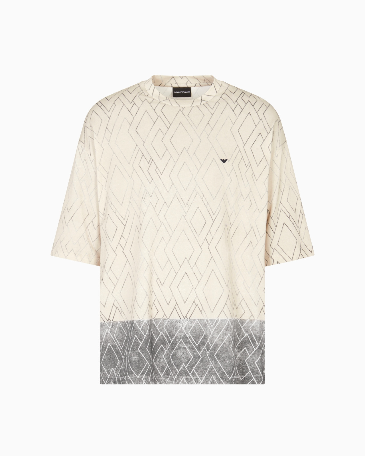 Cotton jersey crew-neck T-shirt. Featuring an all-over print and contrasting two-tone effect on the hem. The rubberised iconic eagle on the chest completes the piece with distinctive flair. Jersey All-over print Crew neck Rubberised micro eagle on the chest Product Code: EM002964AF13717FB071