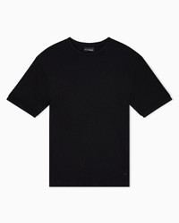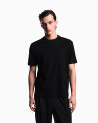 Pure cotton-jersey crew-neck T-shirt featuring a dense, all-over jacquard pattern that creates a unique vertical motif that adds prestige and personality to the style. This refined style can be worn anywhere and with anything. Jersey Jacquard Crew neck Short sleeves Micro eagle embroidered on the left hem Product Code: EM003468AF19393UC001