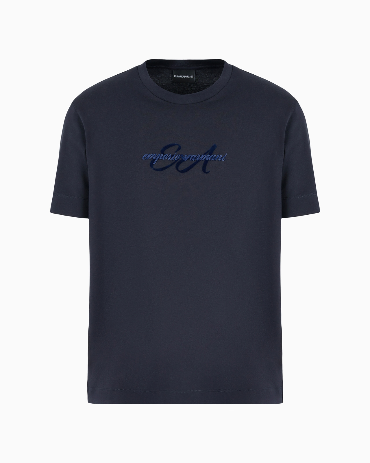 Crew-neck T-shirt made from lightweight pure cotton jersey, featuring front logo embroidery on a flocked base. By choosing this product you are helping to support the Better Cotton Initiative: The BCI uses a tracking system that allows Better Cotton to replace or be blended with conventional cotton. Product Code: 6D1TQ81JOCZ10920 Details Composition 100% Cotton Regular fit Lightweight jersey Crew neck Short sleeves Logo embroidery Fitting Regular fit The model is 188 cm tall and is wearing size 48/M (Italian Size)