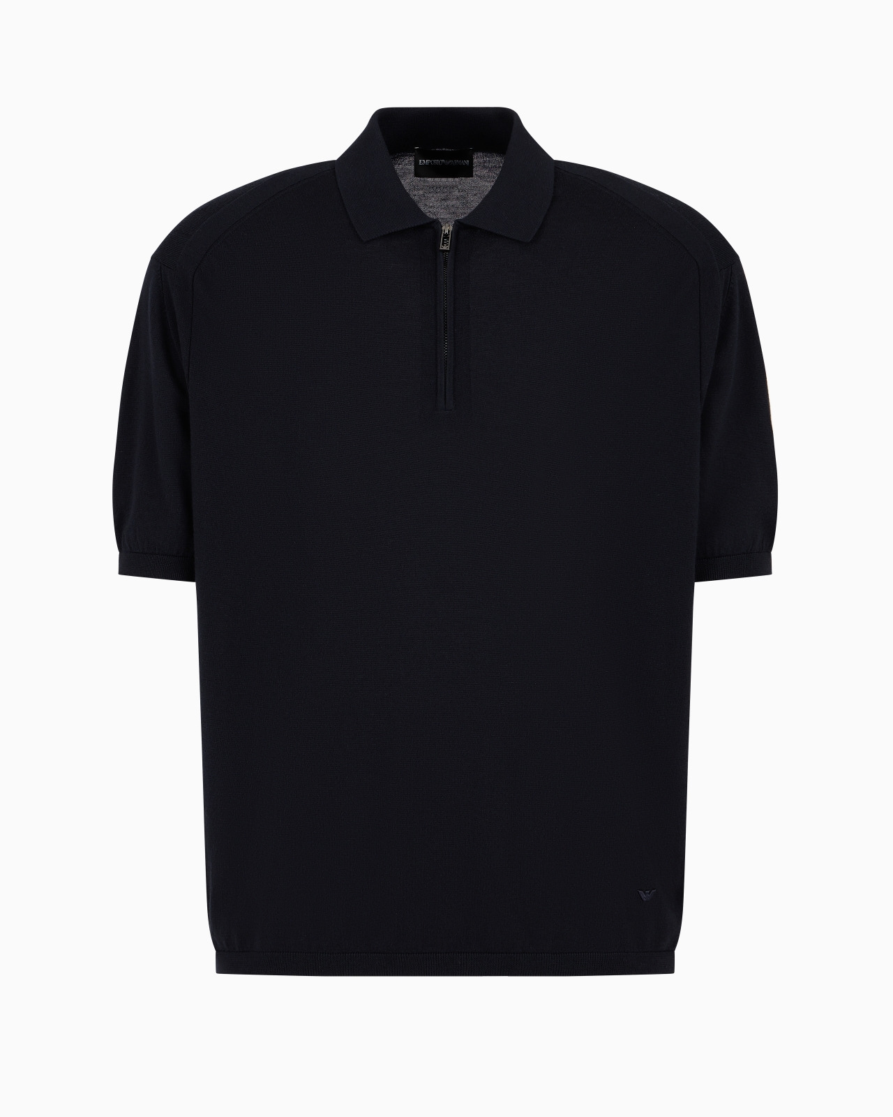 Short-sleeved jumper with a polo-shirt collar and partial zip, made from a blend of virgin wool and Lyocell, a semi-synthetic fibre known for its extremely low impact on the environment. Produced from eucalyptus trees, Lyocell is valued for being moisture-wicking, durable and breathable. Product Code: 6D1MXF1MJKZ10920 Details Composition 55% Lyocell 40% Virgin Wool 5% Silk Fineness: 14 Plain knit Polo-shirt collar Partial zip Short sleeves Contrasting ribbed trim Micro-eagle embroidered at the left hem Fitting The model is 188 cm tall and is wearing size 48/M (Italian Size)