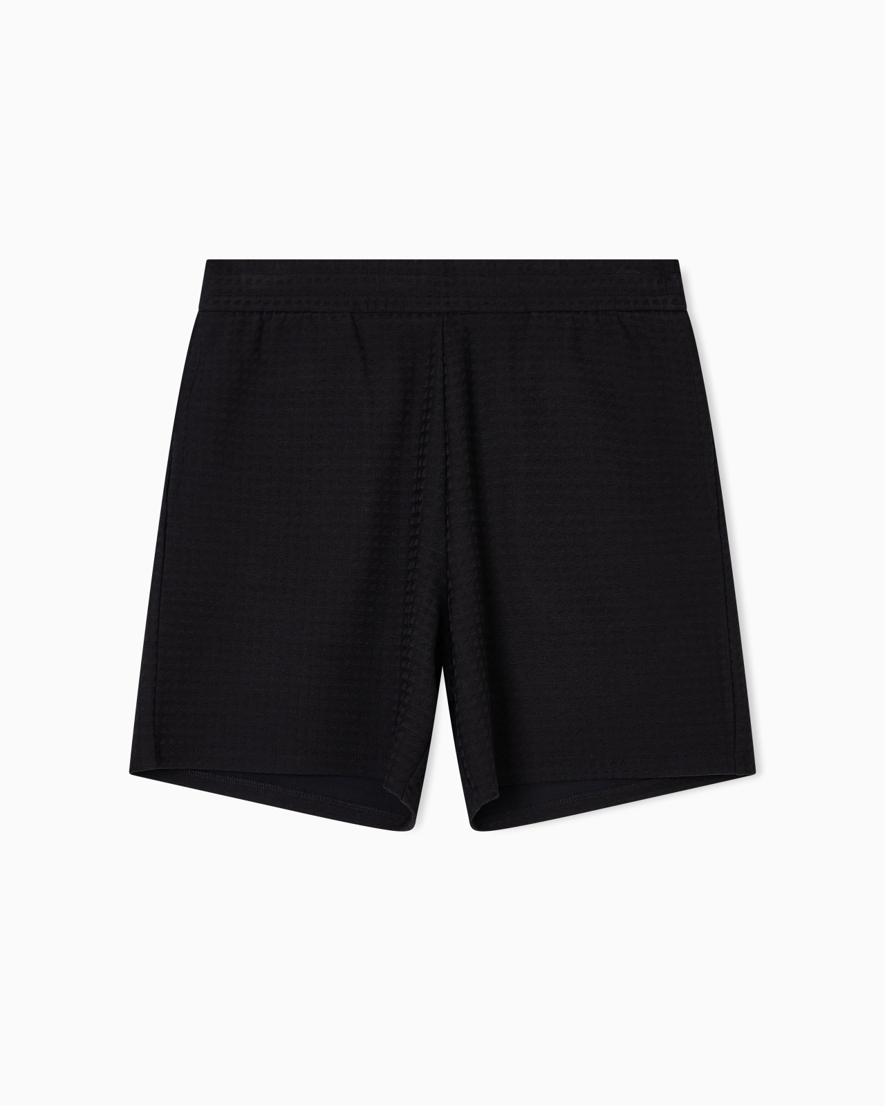 Elasticated drawstring-waist Bermuda shorts made of Lyocell-blend jersey. Lyocell is a semi-synthetic fibre that has an exceptionally low impact on the environment. It is derived from the eucalyptus tree and is renowned for being very absorbent, durable, breathable and wrinkle-proof. The jacquard pattern creates an original all-over motif, adding prestige and personality to the style. This refined style can be worn anywhere and with anything. Jersey Jacquard Elasticated waist Inner drawstring Side pockets Back welt pockets EA logo plate Product Code: EM003144AF13700FC231