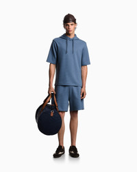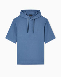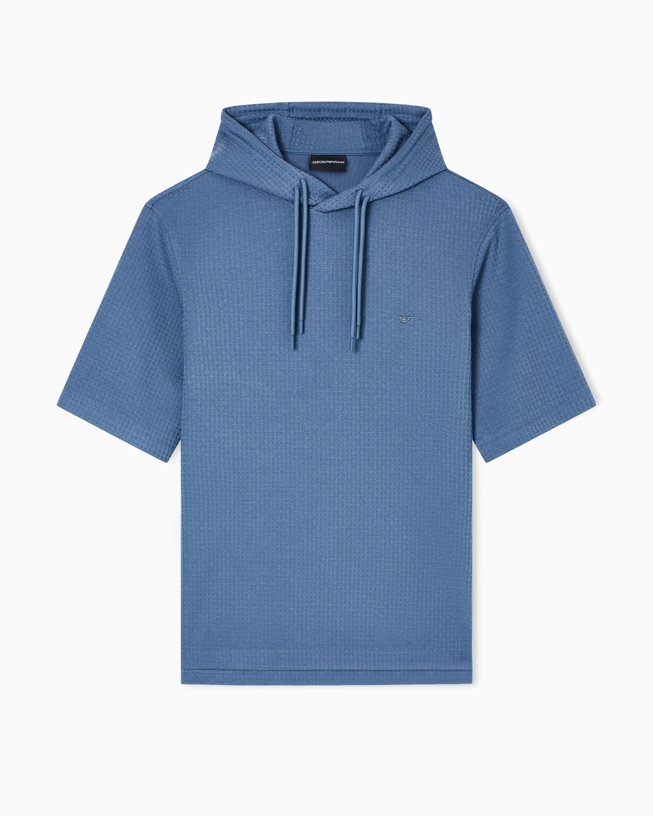 Short-sleeved sweatshirt with drawstring hood. Made from Lyocell-blend jersey. Lyocell is a semi-synthetic fibre that has an exceptionally low impact on the environment. It is derived from eucalyptus trees and is renowned for being very durable, breathable, absorbent and wrinkle-proof. The jacquard pattern creates an original all-over motif, adding prestige and personality to the style. This refined style can be worn anywhere and with anything. Jersey Jacquard Drawstring hood Short sleeves Micro-eagle embroidery on the chest Product Code: EM003143AF13700F9073
