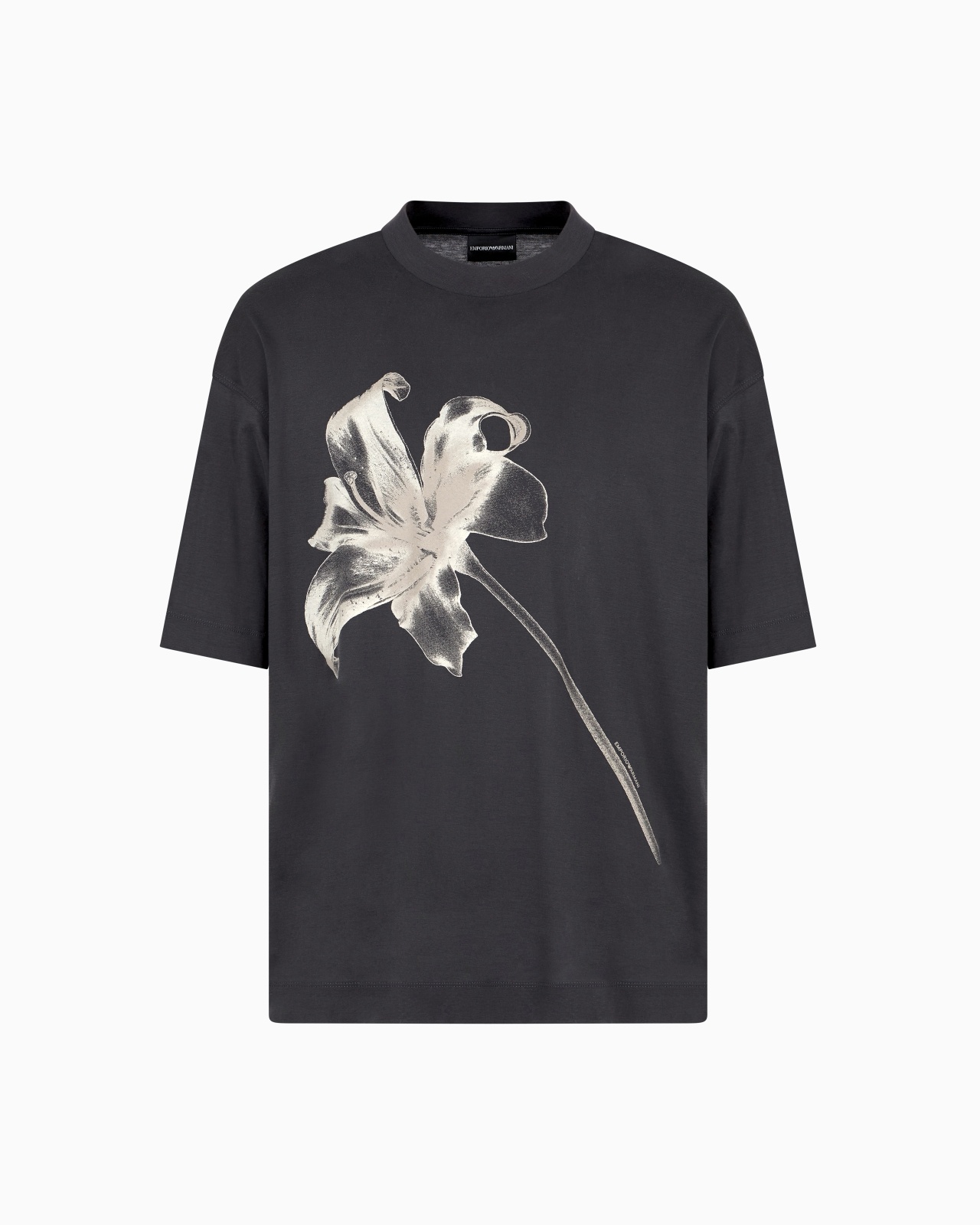 Oversized-fit, crew-neck T-shirt with front flower print. The graphic design and embroidery that embellish this part of the collection convey an immediate feeling of lightness, evoking delicate shapes and subtle figures, as if sculpted by the wind on sand dunes. Made from a jersey in a blend of cotton and Lyocell, a semi-synthetic fibre that has an exceptionally low impact on the environment. It is derived from eucalyptus trees and is renowned for being moisture-wicking, durable, breathable and wrinkle-proof. Oversized fit Jersey Crew neck Short sleeves Collection print Product Code: EM001460AF10017U8168