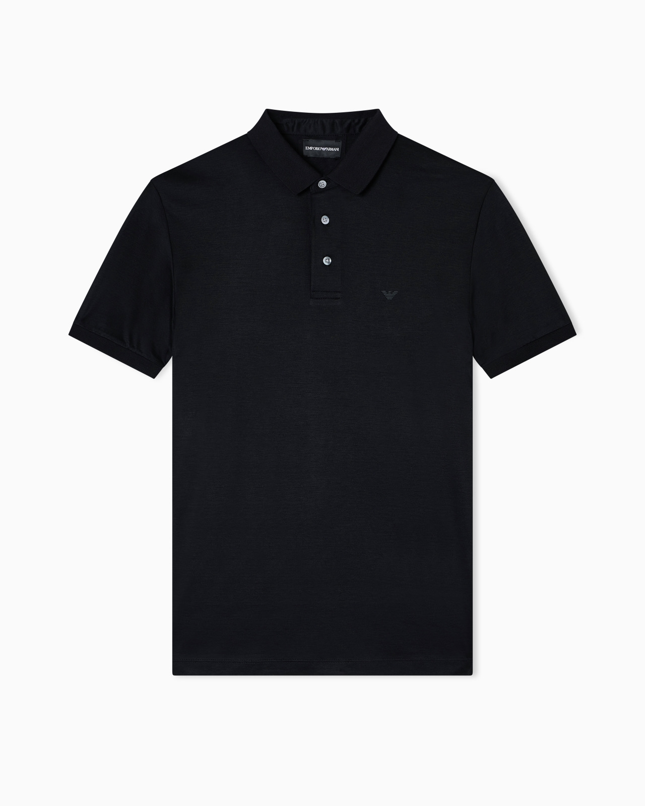 Polo shirt made from a cotton and Lyocell blend jersey. Lyocell is a semi-synthetic fibre that has an exceptionally low impact on the environment. It is derived from eucalyptus leaves and is renowned for its good resistance, capacity to absorb moisture, excellent breathability and for being wrinkle-resistant. The matching micro eagle embroidered on the chest adds a touch of distinction. This item belongs to the Essentials clothing selection, a permanent collection with clean, well-designed shapes for a wardrobe that meets the demands of any season. These “essential”, versatile pieces are a must-have for the male wardrobe. Product Code: 8N1F961JUVZ10999 Details Composition 70% Lyocell 30% Cotton Jersey Polo-shirt collar Partial closure with buttons Short sleeves Monochromatic embroidered eagle Side slits at the hem Fitting The model is 188 cm tall and is wearing size 48/M (Italian Size)