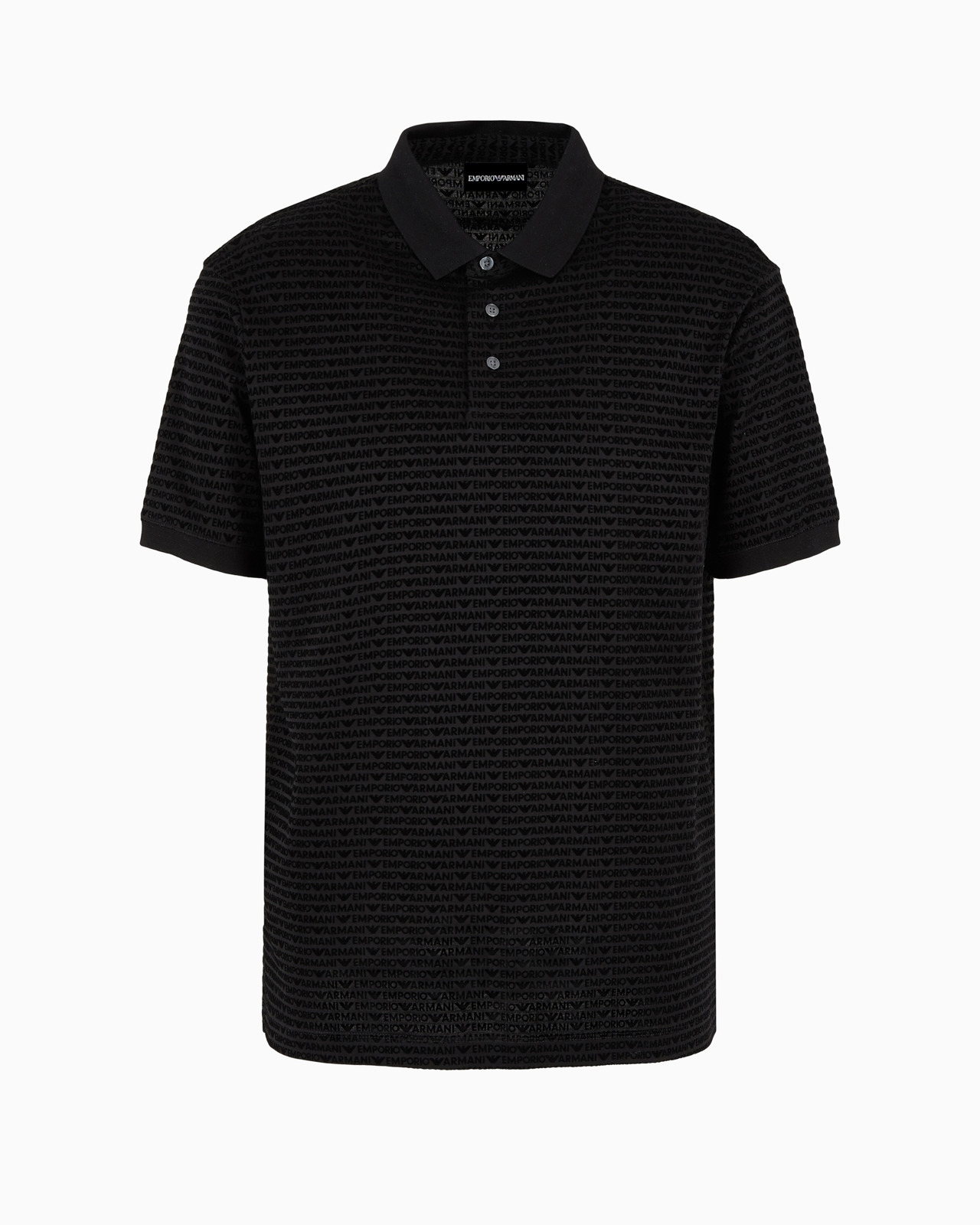 Regular-fit polo shirt embellished all over with a very dense pattern of logo lettering in a flock print, a technique that provides a unique, velvety, embossed look. Made from a jersey in a blend of cotton and Lyocell, a semi-synthetic fibre that has an exceptionally low impact on the environment. It is derived from eucalyptus trees and is renowned for being moisture-wicking, durable, breathable and wrinkle-proof. Product Code: 6D1F791JOSZ10999 Details Composition 70% Lyocell 30% Cotton Regular fit Jersey All-over flock print Polo-shirt collar Short sleeves Ribbed-knit trim Fitting Regular fit The model is 188 cm tall and is wearing size 48/M (Italian Size)
