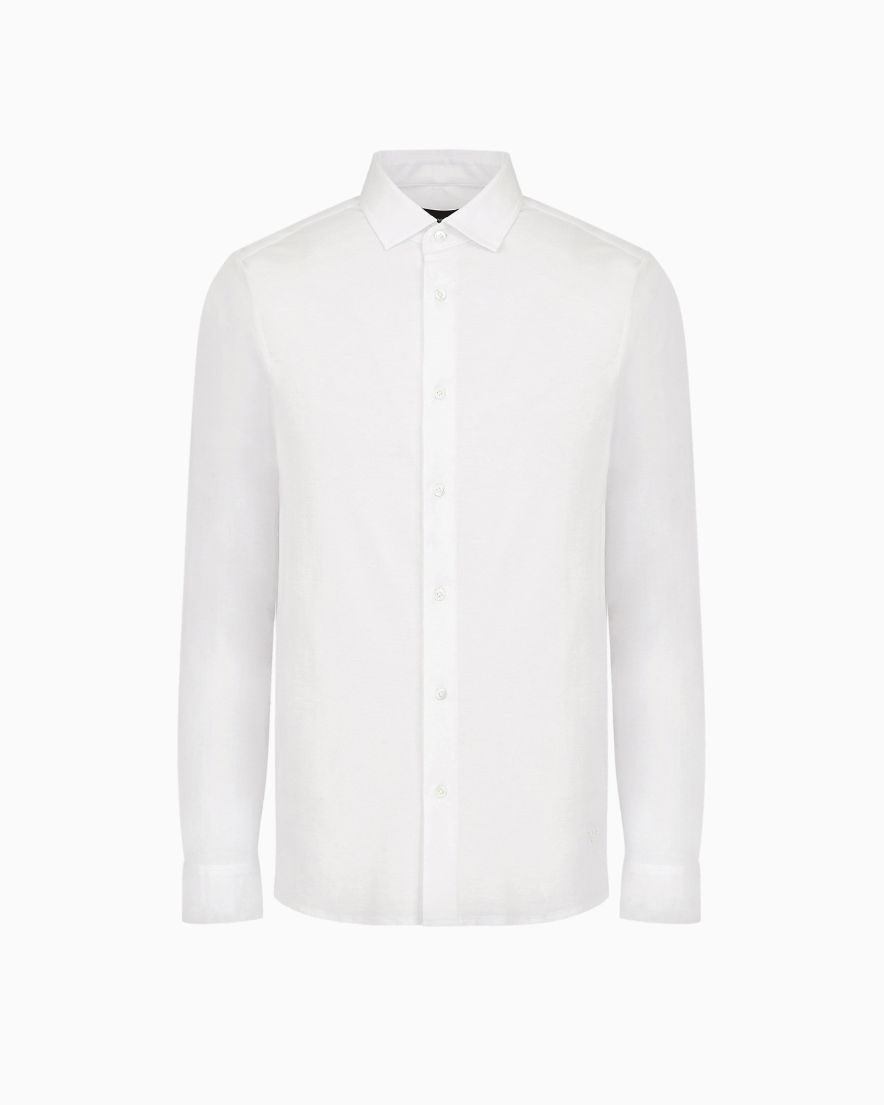 Classic collar shirt in Lyocell-blend jersey. This shirt is made from Lyocell, which is a semi-synthetic fibre that has an exceptionally low impact on the environment. It is derived from the eucalyptus tree and is renowned for being very durable, breathable, absorbent and wrinkle-proof. This item belongs to the Essentials clothing selection, the Emporio Armani capsule collection that is an evergreen statement of style: an ongoing collection with clean, well-designed shapes for a wardrobe that meets the demands of any season. These “essential”, versatile pieces are a must-have for the male wardrobe. Product Code: 8N1CG11JUVZ10100 Details Composition 70% Lyocell 30% Cotton Jersey Classic collar Front buttoning Long sleeves Rounded cuffs with buttons Matching eagle on the left side of the hem Back yoke Fitting The model is 188 cm tall and is wearing size 40