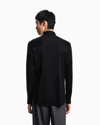 Cosy cotton-blend jersey and Lyocell shirt with a patch pocket with contrasting logo tape. An urban piece that lends itself to completing metropolitan looks. Jersey Classic collar Front buttoning Long sleeves Straight buttoned cuffs Back yoke Product Code: EM003055AF10761UC001