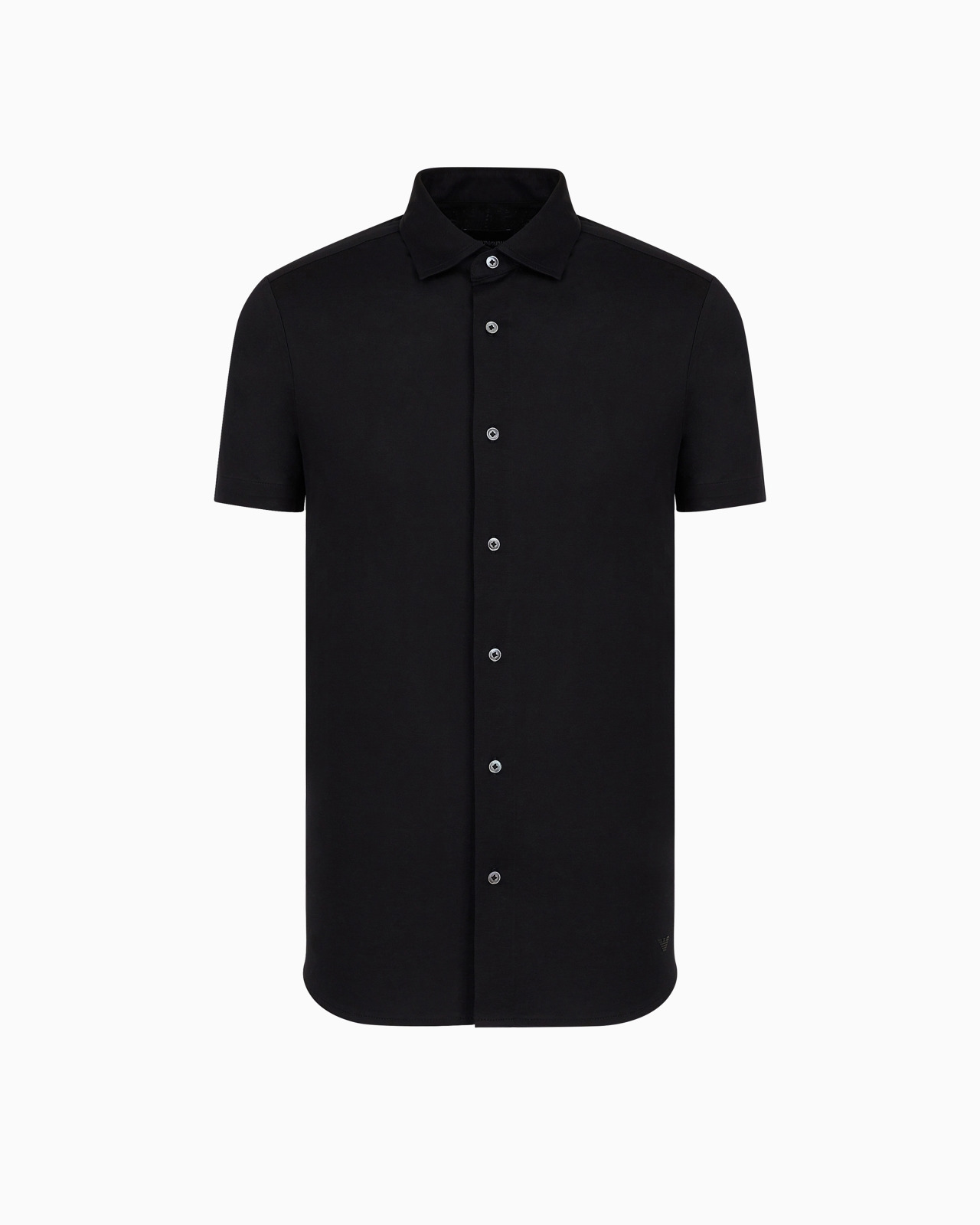 Lyocell-blend jersey short-sleeved shirt with classic collar. This shirt is made from Lyocell, which is a semi-synthetic fibre that has an exceptionally low impact on the environment. It is derived from the eucalyptus tree and is renowned for being very durable, breathable, absorbent and wrinkle-proof. This item belongs to the Essentials clothing selection, the Emporio Armani capsule collection that is an evergreen statement of style: an ongoing collection with clean, well-designed shapes for a wardrobe that meets the demands of any season. These “essential”, versatile pieces are a must-have for the male wardrobe. Product Code: 8N1CG01JUVZ10999 Details Composition 70% Lyocell 30% Cotton Jersey Classic collar Front buttoning Short sleeves Matching eagle on the left side of the hem Back yoke Fitting The model is 188 cm tall and is wearing size 40