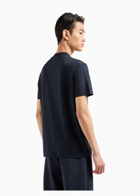 Crew-neck T-shirt with flocked logo trim. Made from a jersey in a blend of cotton and Lyocell, a semi-synthetic fibre that has an exceptionally low impact on the environment. It is derived from eucalyptus trees and is renowned for being moisture-wicking, durable, breathable and wrinkle-proof. Product Code: 6D1TR31JOSZ10661 Details Composition 70% Lyocell 30% Cotton Regular fit Jersey Crew neck Short sleeves Flocked logo Fitting Regular fit The model is 188 cm tall and is wearing size 48/M (Italian Size)