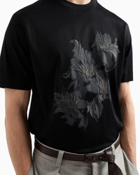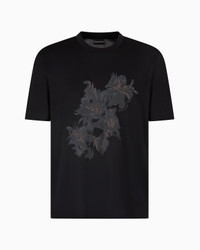 ASV LYOCELL-BLEND JERSEY T-SHIRT WITH PRINT AND FLORAL EMBROIDERY