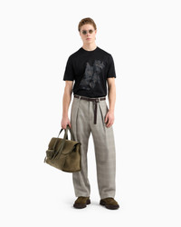 Crew-neck T-shirt featuring front print with embroidery. Made from a jersey in a blend of cotton and Lyocell, a semi-synthetic fibre that has an exceptionally low impact on the environment. It is derived from eucalyptus trees and is renowned for being moisture-wicking, durable, breathable and wrinkle-proof. Jersey Crew neck Short sleeves Collection print and embroidery Product Code: EM001024AF10017UC001