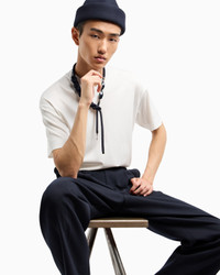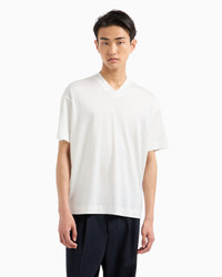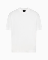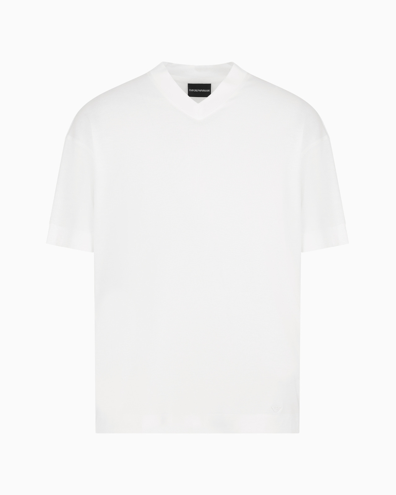 V-neck T-shirt made from a cotton and Lyocell-blend jersey, a semi-synthetic fibre that has an exceptionally low impact on the environment. It is derived from eucalyptus trees and is renowned for being very durable, breathable, moisture-wicking, and wrinkle-proof. Product Code: 6D1TC81JOSZ10101 Details Composition 70% Lyocell 30% Cotton Jersey V neck Short sleeves Embossed micro eagle on the left hem Fitting The model is 188 cm tall and is wearing size 48/M (Italian Size)