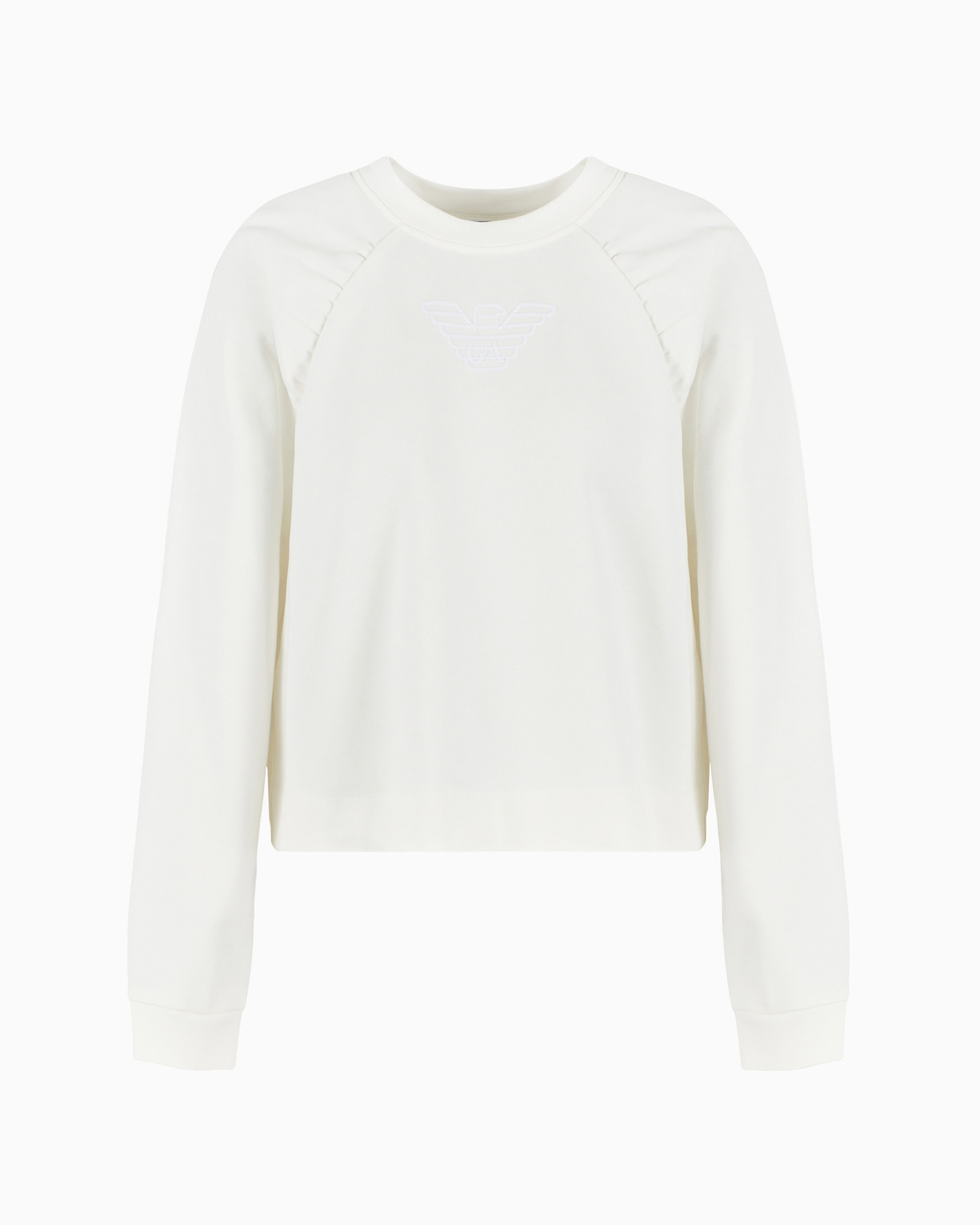 Crew-neck sweatshirt in an organic cotton French terry fabric made with natural fibres from organic farming. The piece features a monochromatic embossed rubberised front eagle print with a shiny finish. Product Code: 6D2M8G2J49Z10101 Details Composition 100% Cotton The fabric is made of 100% organic cotton French terry Crew neck Long sleeves Rubberised logo print Brushed lining Fitting The model is 178 cm tall and is wearing size 40/S (Italian Size)