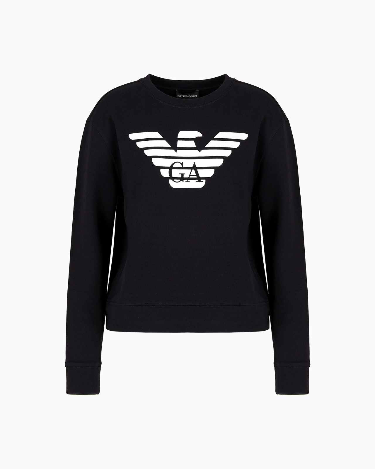 Women’s sweatshirt in organic cotton jersey, a fabric made from natural fibres from organic agriculture, with a logo print on the front that adds distinction to the style. The piece belongs to the Essentials selection, the Emporio Armani capsule collection that makes a statement of enduring style: both elegant and practical, it works for numerous combinations on a wide array of occasions. The colour palette includes the brand’s characteristic neutral shades, combined with a minimalist design to create a series of key pieces for the female wardrobe. Product Code: 8N2M9E2J49Z1F902 Details Composition 100% Cotton Organic jersey Crew neck Long sleeves Logo print Fitting The model is 178 cm tall and is wearing size 40/S (Italian Size)