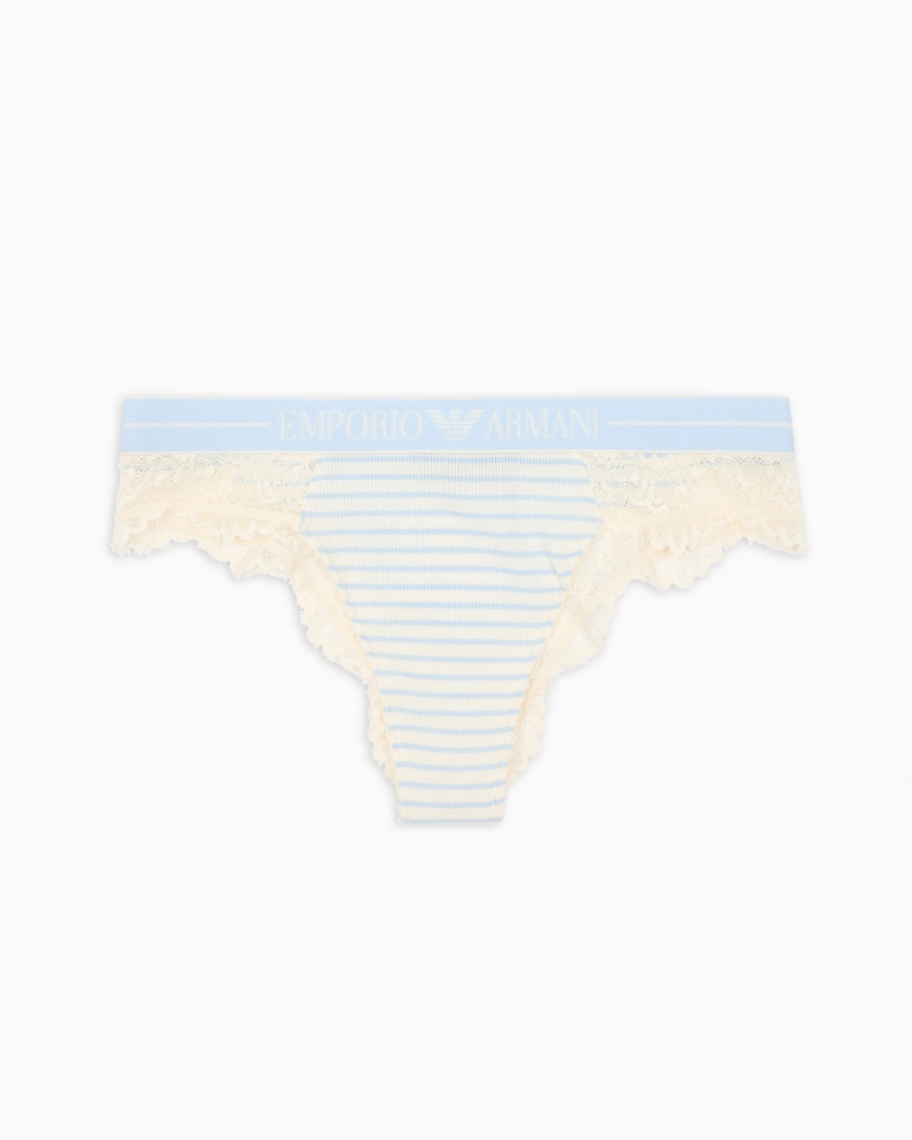 Brazilian briefs with logo elasticated waistband and lace details. Ribbed, striped jersey fabric made from certified recycled polyester, supporting circular, environmentally friendly production. Rib-knit Lace details Elasticated waist with logo Product Code: EW000394AF10885F1030