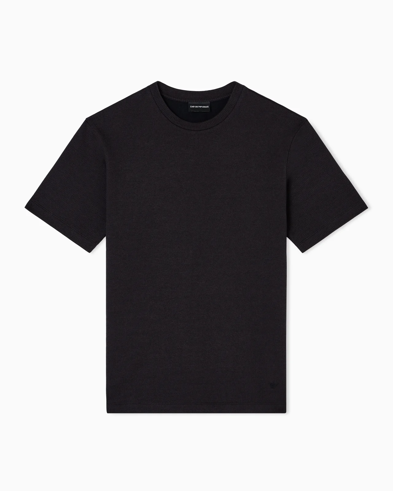 Crew-neck T-shirt made of a two-tone jersey knit with a melange appearance. A versatile piece to wear under blazers for more formal moments or under knitwear when you are looking for comfort. Jersey knit Melange effect Jacquard Crew neck Short sleeves Micro eagle embroidered on the left hem Product Code: EM003470AF19394F6003