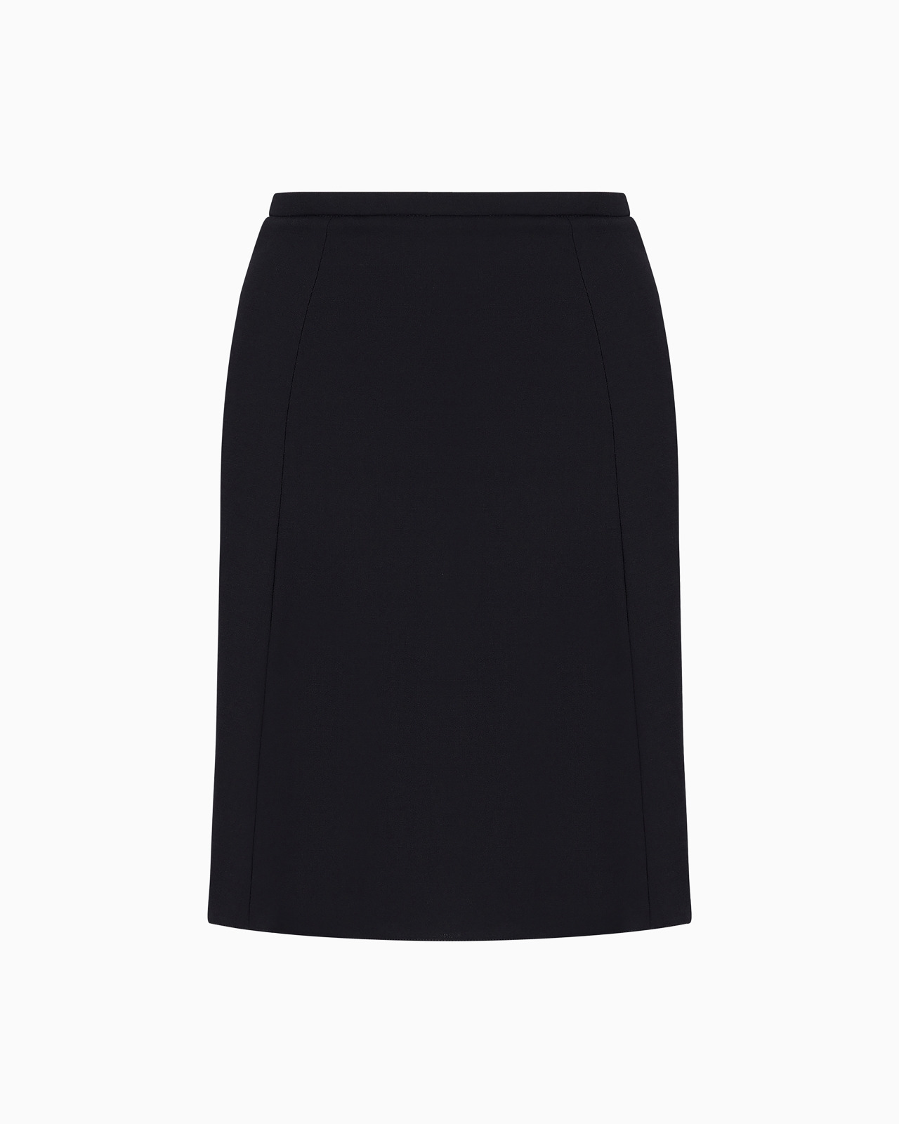Flared skirt made of stretch Barathea wool, whose texture adds elegance and sophistication to this style that flows across the body. The piece belongs to the Essentials selection, the Emporio Armani capsule collection that makes a statement of enduring style: both elegant and practical, it works for numerous combinations on a wide array of occasions. The colour palette includes the brand’s characteristic neutral shades, combined with a minimalist design to create a series of key pieces for the female wardrobe. Product Code: 0NN3BT020021926 Details Composition 96% Virgin Wool 4% Elastane Barathea wool A-line cut Concealed zip fastening at the back Georgette lining Made in Italy Fitting The model is 178 cm tall and is wearing size 40/S (Italian Size)