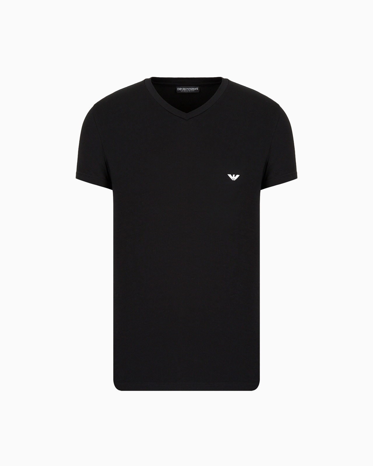 Stretch cotton, V-neck vest. Front eagle logo. Product Code: 110810CC729100020 Details Composition 95% Cotton 5% Elastane Jersey V-neck Short sleeves Brand logo