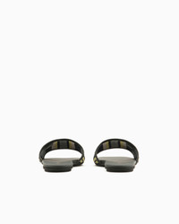 Basketweave sandals with banded upper and leather trim. A style that echoes the colours and graphic designs of the bags in this collection, with the EA logo on the upper. Product Code: X3P825XR1371D175 Details Composition 70% Cotton 30% Polyester 0% Goat skin Basketweave fabric upper Leather piping Collection graphic design Made in Italy
