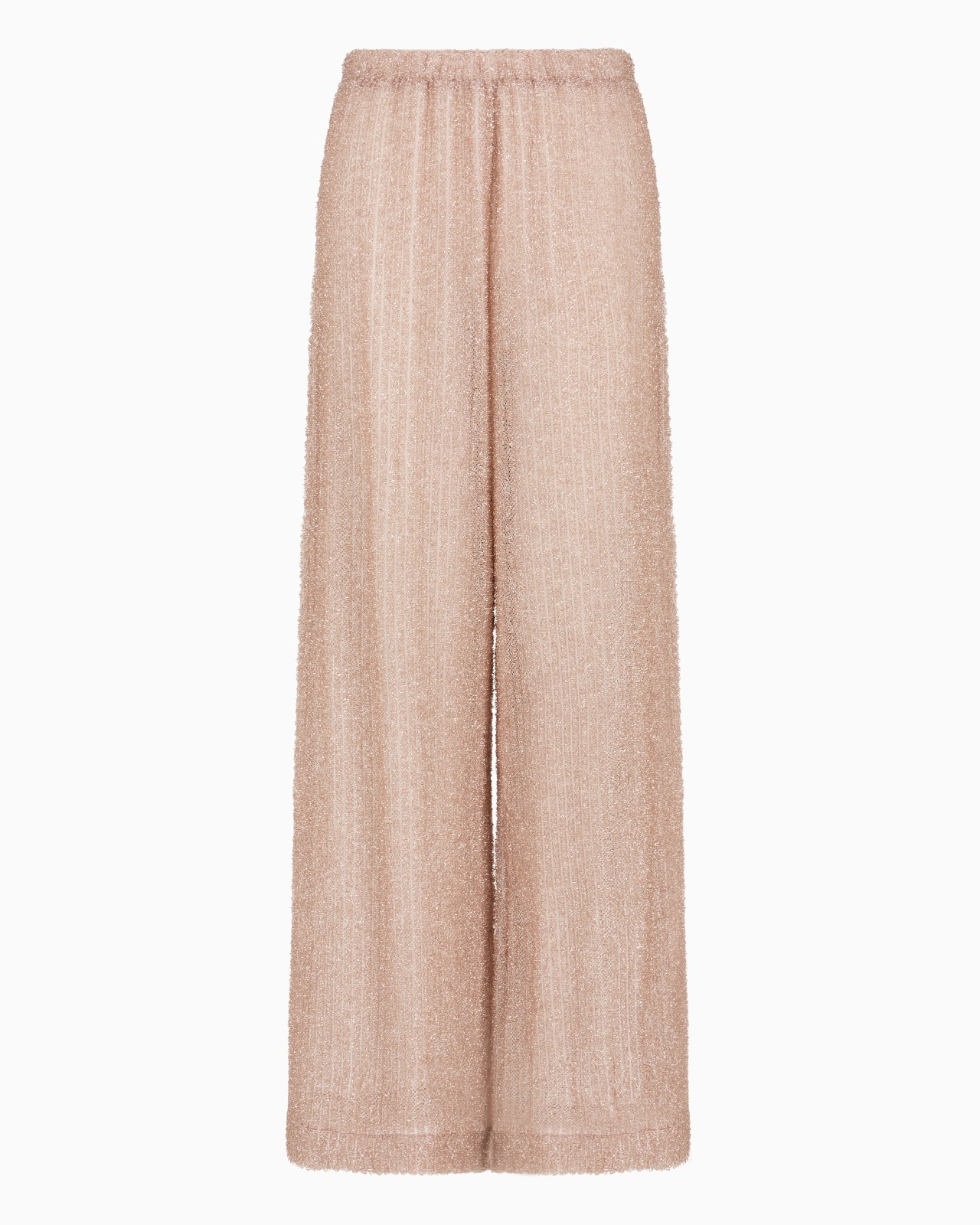 Trousers with elasticated waist and wide leg. A bold cover-up in a fuzzy lurex ribbed fabric that creates a 3D effect and adds a touch of sparkle. Lurex Fuzzy ribbed fabric Elasticated waist Wide leg Product Code: EW000563AF12204U4115