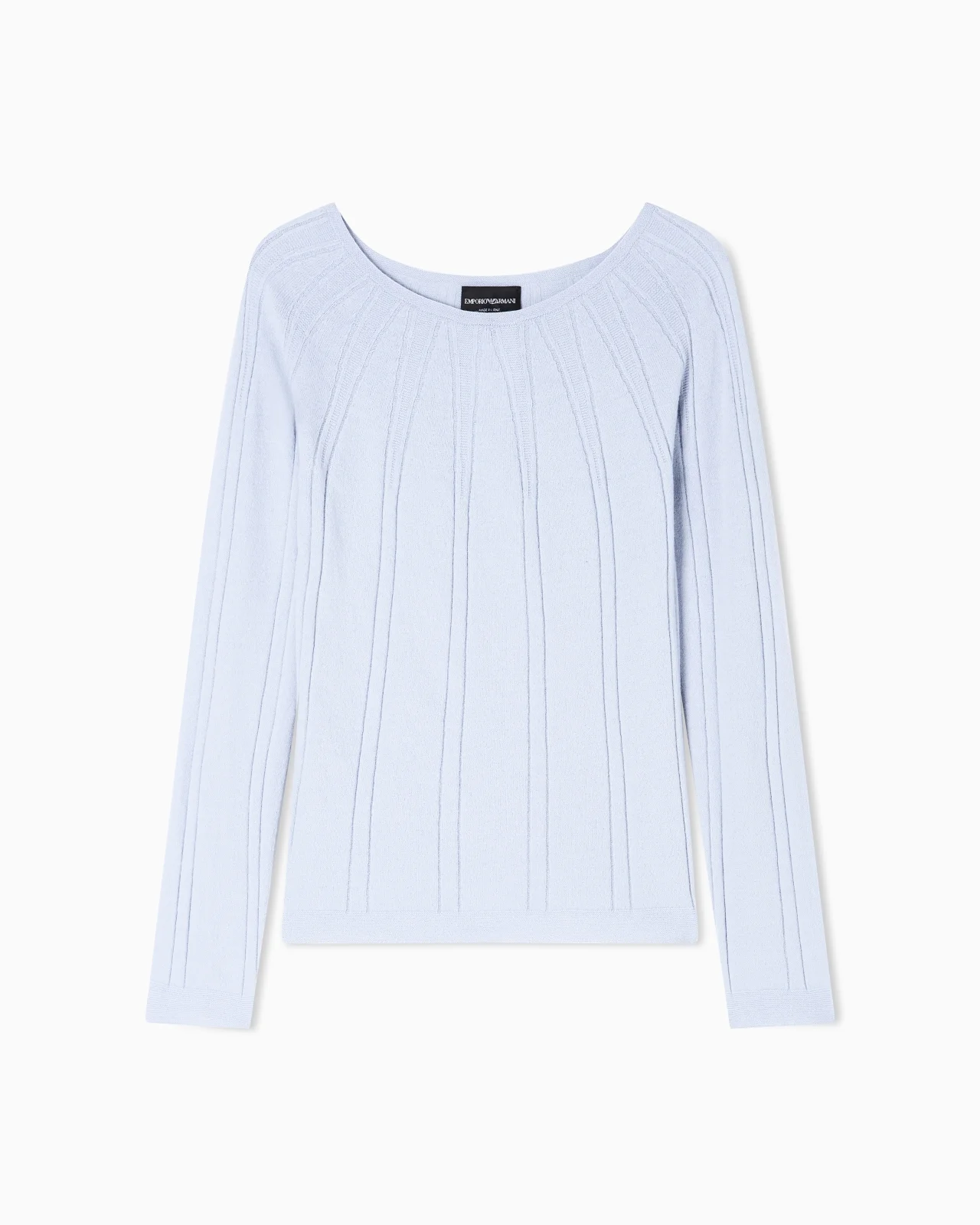 Boat-neck jumper in a fabric with a soft feel due to a small percentage of cashmere. The style features a distinctive vertical links-stitch motif Links-stitch motif Boat neck Long sleeves Made in Italy Product Code: EW003650AF21631U8012