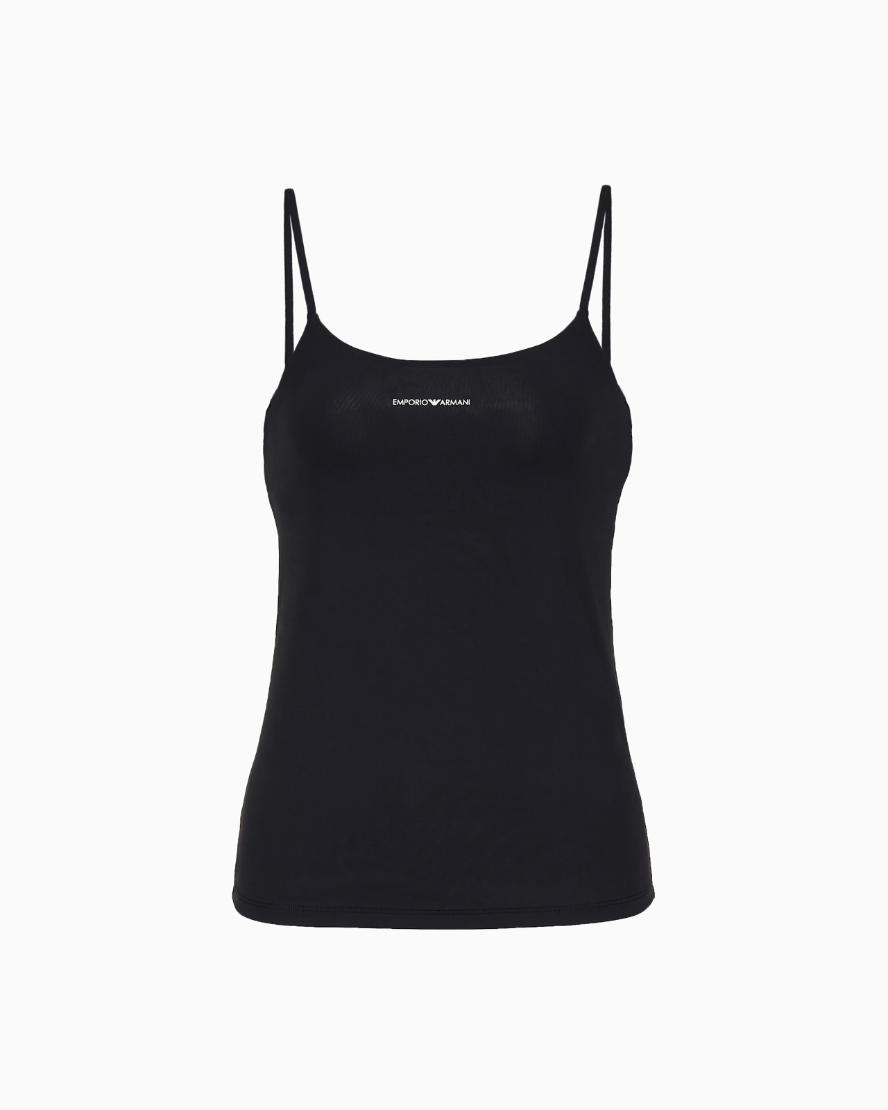 Bonded microfibre tank top. Its totally seamless design results in ultra-flat edges that are not visible under clothing. Front logo. Product Code: 164409CC284100020 Details Composition 79% Polyamide 21% Elastane Synthetic jersey Brand logo Deep neckline