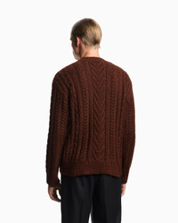 Wool-blend, crew-neck jumper featuring a cable knit. The style is illuminated by lurex fibres that add a touch of brightness. Fineness: 3 Knit Lurex Cable-knit Crew neck Long sleeves Ribbed trim Product Code: EM003989AF20804O6001