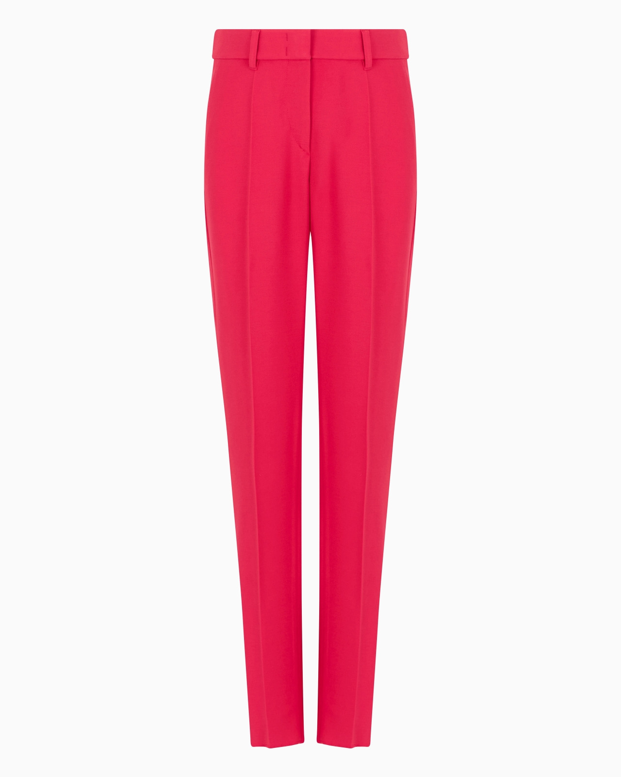 Cady crepe trousers with stitched crease on the leg and belt loops at the waist. This item is defined by Emporio Armani’s distinctive allure, making it perfect for all everyday activities, both formal and casual. Product Code: 0NP08T020131U4169 Details Composition 50% Viscose 47% Acetate 3% Elastane Cady crepe Waistband with belt loops and satin lining Front ribs Closure with zip, hook and back button Side pockets Back welt pocket Unlined garment Ankle cuffs: 17 cm Fitting The model is 178 cm tall and is wearing size 40/S (Italian Size)