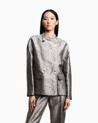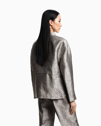 Jacket with iconic guru collar, made of a linen and viscose blend that feels particularly smooth thanks to a percentage of silk in the main fabric. The style features jacquard with a camouflage motif: a pattern with a classic urban appeal that adapts to everyday wear. Inspired by the typical design of safari jackets, it features a drawstring that accentuates the waist, side patch pockets and closure with marble-effect press-studs. Linen blend Guru collar Closure with marble-effect press-studs Long sleeves Side patch pockets with flap Drawstring waist with internal pull tabs Satin lining Product Code: EW001731TE13519F8026