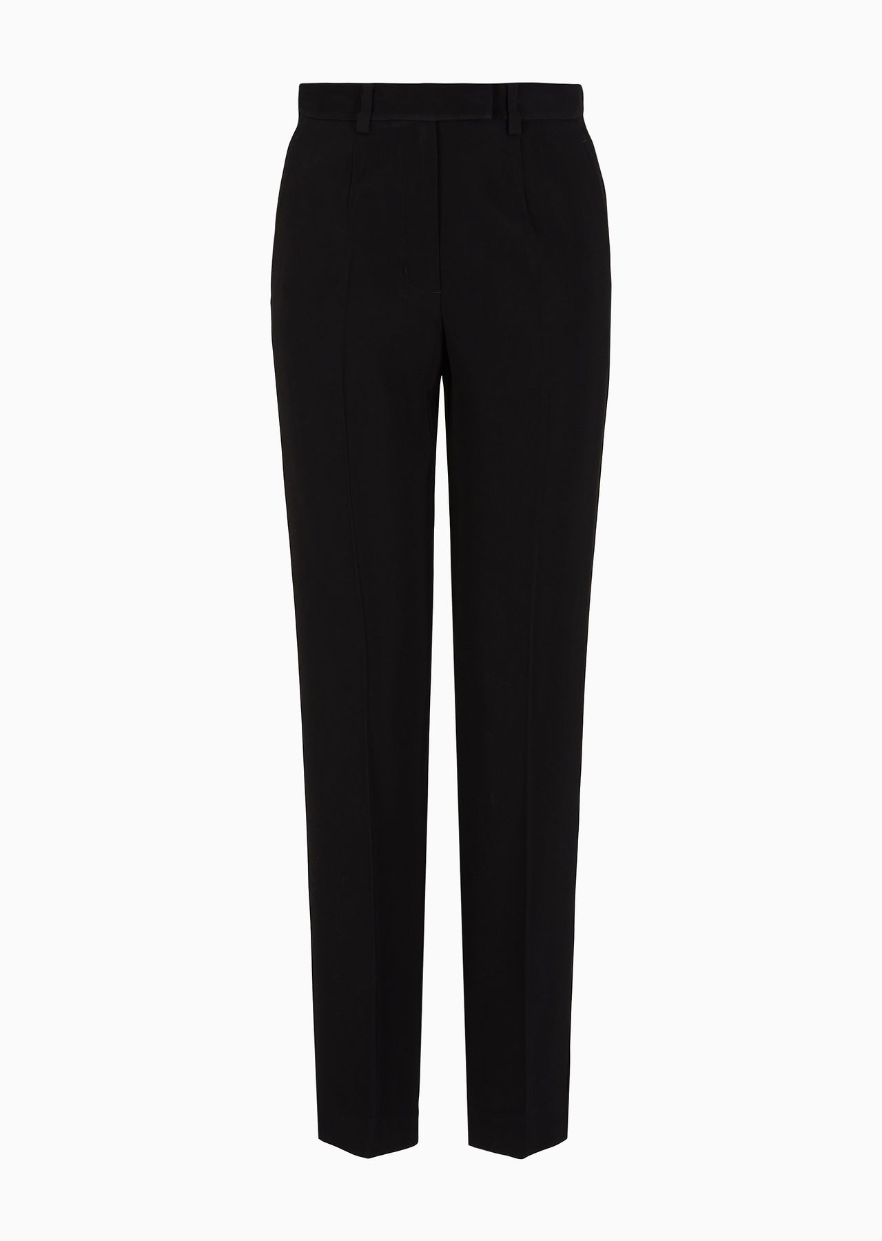 Linear-fit trousers made from stretch viscose. The pleats at the waist accentuate the streamlined fit of the leg, and combined with the fluidity of the fabric, give the piece a graceful, elegant allure. Product Code: 6D2P692NA9Z10999 Details Composition 99% Viscose 1% Elastane Stretch viscose Waist with pleats Closure with hook and back button Side pockets Back pocket with double welt and button Fitting The model is 178 cm tall and is wearing size 40/S (Italian Size)