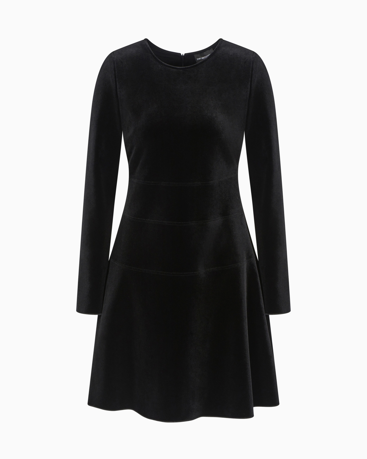 Long-sleeved, round-neck dress made of a bonded jersey fabric with a chenille exterior and scuba interior. A versatile piece suitable for multiple day&night occasions. Length: 81 cm Bonded jersey Rounded neckline Long sleeves Back zip closure Product Code: EW001367AF16466UC001