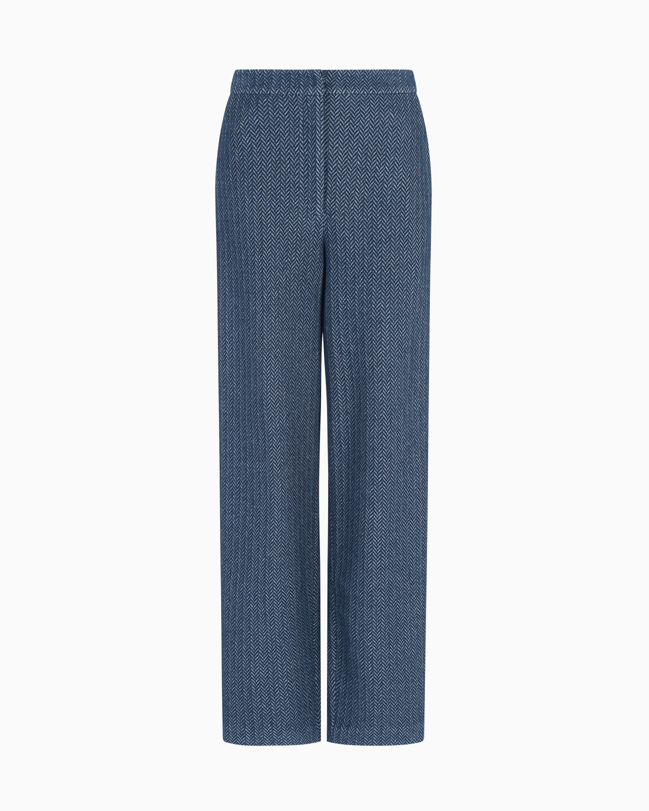Trousers made of jersey with the brand’s signature chevron motif, which takes on a sophisticated all-over two-tone look enhancing the style’s exclusive allure. A comfortable fit that, combined with the jacket in the same texture, creates a perfect total look with a modern feel. Jersey Chevron motif Zip and hook closure Side pockets Product Code: EW001649AF15146FB067