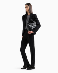 Single-breasted jacket with lapel collar, in stretch viscose fabric. The fluid and stretchy fabric is the perfect base for a style designed to make daywear outfits stand out. A horsebit detail at the cuffs adds greater sophistication. Product Code: 6D2G632NA9Z10999 Details Composition 99% Viscose 1% Elastane Stretch viscose Single-breasted Lapel collar Closure buttons Side flap pockets Cuffs with horsebit Lined garment Fitting The model is 178 cm tall and is wearing size 40/S (Italian Size)