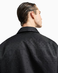 Satin bomber jacket embellished with heat-sealed matching rhinestones applied on the front and back. This item belongs to the Clubwear capsule collection, a selection of casual styles with added distinction and shimmer, designed to shine on the most special evening events, at parties and in clubs. The palette is entirely black, embellished with sparkling details and matching rhinestones that give a vibrant, glistening allure. Satin Heat-sealed rhinestones Classic collar Zip closure Long sleeves Side welt pockets with press-stud Chenille lining Product Code: EM003784AF20415UC001