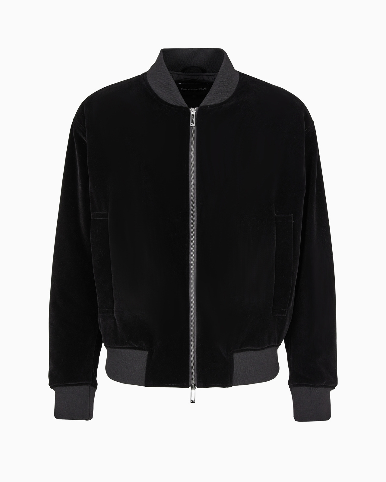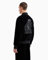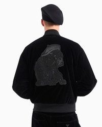 Clubwear velour bomber jacket with oversized French bulldog patch