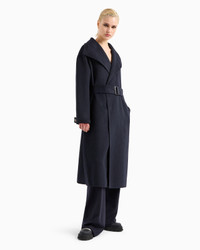 Compact double wool-blend robe coat