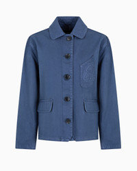This blouson is made from cotton drill: a very sturdy woven fabric, characterised by small visible ribs and similar to denim in terms of weight and durability. The style has a horn button opening and side pockets with flaps. Cotton drill Baseball-shirt collar Button opening Patch pocket for a pocket square Embossed EA logo Two flapped side pockets Long sleeves Horn button cuffs Matching stitching Slit at the back Unlined garment Product Code: EW000726AF12426UB092