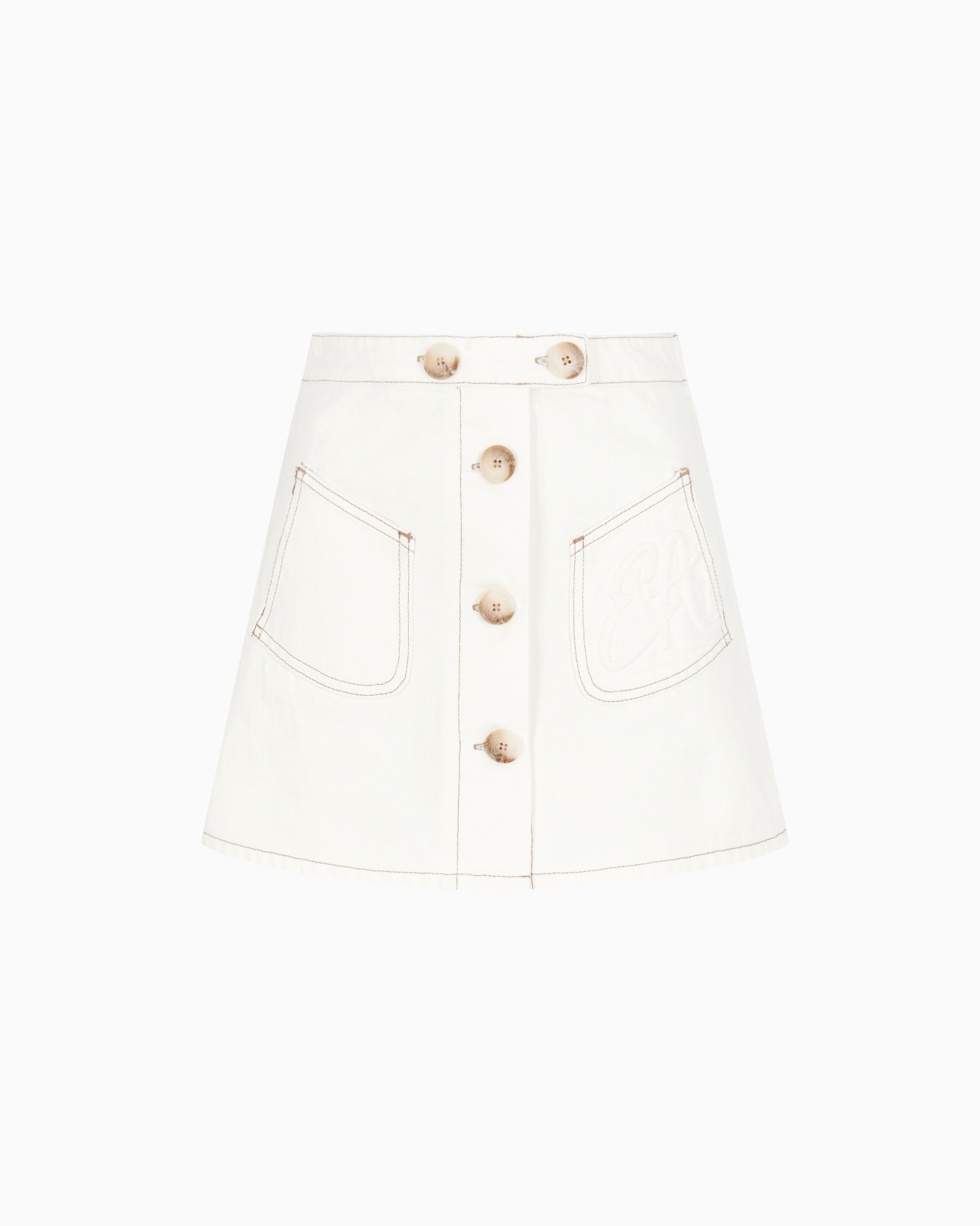 Culottes made from cotton drill: a very sturdy woven fabric, characterised by small visible ribs and similar to denim in terms of weight and durability. The style features a horn button closure, side patch pockets and an embossed iconic EA logo to complete the piece with distinction. Cotton drill Closure with horn buttons Side patch pockets Embossed EA logo Product Code: EW001086AF12426U0006
