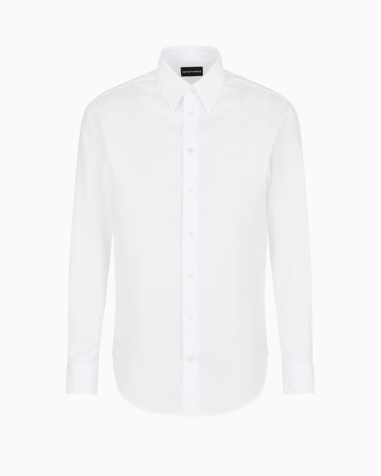 Shirt with pointed-leaf collar, made of pure cotton jacquard. The unique all-over pattern adds style and distinction. Product Code: EM000194TE113201U0002 Details Composition 100% Cotton Jacquard Pattern Collar with pointed leaves Front buttoning Long sleeves Rounded cuffs Back yoke Fitting The model is 188 cm tall and is wearing size 40