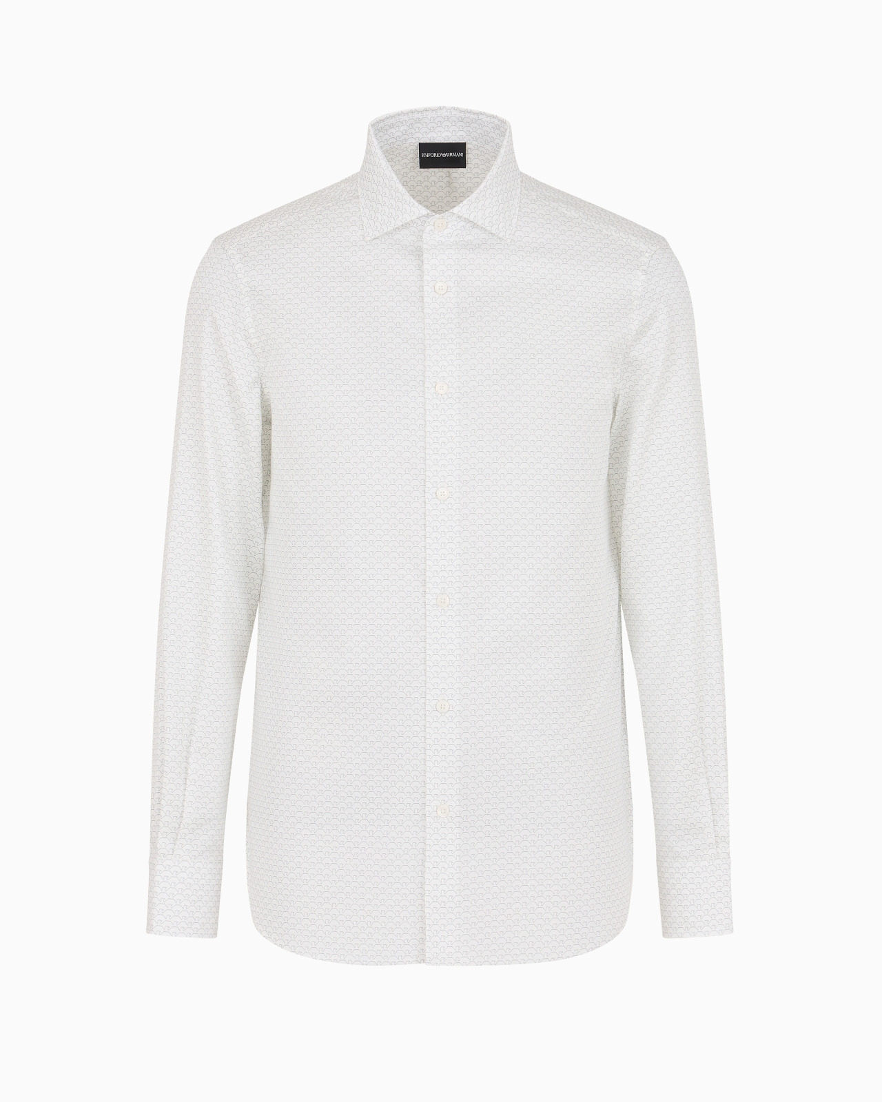 Regular-fit shirt made from stretch cotton featuring a classic collar. The dense print of recognisable logo that covers the entire piece gives the garment a distinctive look. Product Code: 6D1C861NPBZ1F121 Details Composition 98% Cotton 2% Elastane Regular fit All-over logo print Classic collar Long sleeves Rounded cuffs with buttons Back yoke Back pleats Fitting Regular fit The model is 188 cm tall and is wearing size 40
