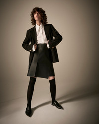 Skirt made of exquisite nappa lambskin with a particularly soft feel and raw cut edges. The symmetrical design features an off-centre closure on the left hip that adds distinction. The style is part of this season’s new Dawn to Dusk capsule collection, a selection of wardrobe essentials in a colour palette that takes inspiration from the golden light of dawn and the subtle shadows of sunset, creating a mix of warm and sophisticated tones accompanied by darker touches of shade.. A line designed to create a versatile wardrobe with pieces that lend themselves to being worn together to create layered looks, or matched to produce different creations that accompany you from morning to night. Length: 58 cm Nappa lambskin Wrap closure Inner press stud on the right side Diagonal inner zip and double press stud on the left side Asymmetric design Product Code: EW001753AF15392UC001