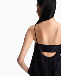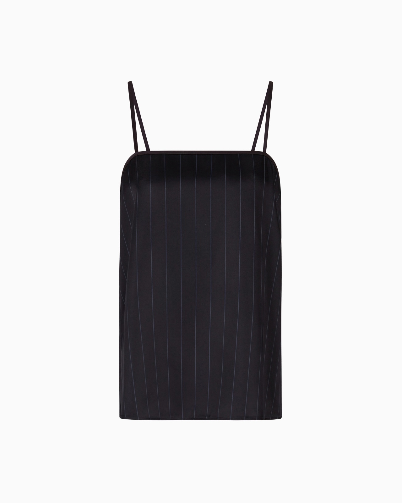 Straight-neck top with thin shoulder straps in a fluid viscose and acetate blend fabric that adds a lightweight texture and natural sheen to the garment. The style is part of this season’s new Dawn to Dusk capsule collection, a selection of wardrobe essentials in a colour palette that takes inspiration from the golden light of dawn and the subtle shadows of sunset, creating a mix of warm and sophisticated tones accompanied by darker touches of shade. A line designed to create a versatile wardrobe with pieces that lend themselves to being worn together to create layered looks, or matched to produce different creations that accompany you from morning to night. Pinstriped motif Straight neckline Thin shoulder straps Keyhole opening at the back of the neck Product Code: EW001705AF15121FB119