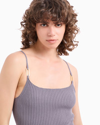 Rib-knit fitted long dress. The texture enhances the style’s femininity with a comfortable, form-fitting silhouette. The style has attached thin shoulder straps and a gold ring detail that adds a touch of brightness. The style is part of this season’s new Dawn to Dusk capsule collection, a selection of wardrobe essentials in a colour palette that takes inspiration from the golden light of dawn and the subtle shadows of sunset, creating a mix of warm and sophisticated tones accompanied by darker touches of shade.. A line designed to create a versatile wardrobe with pieces that lend themselves to being worn together to create layered looks, or matched to produce different creations that accompany you from morning to night. Length: 120 cm Form-fitting cut Rib knit Rounded neckline Thin shoulder straps Gold rings detail Product Code: EW001827AF15581UA064