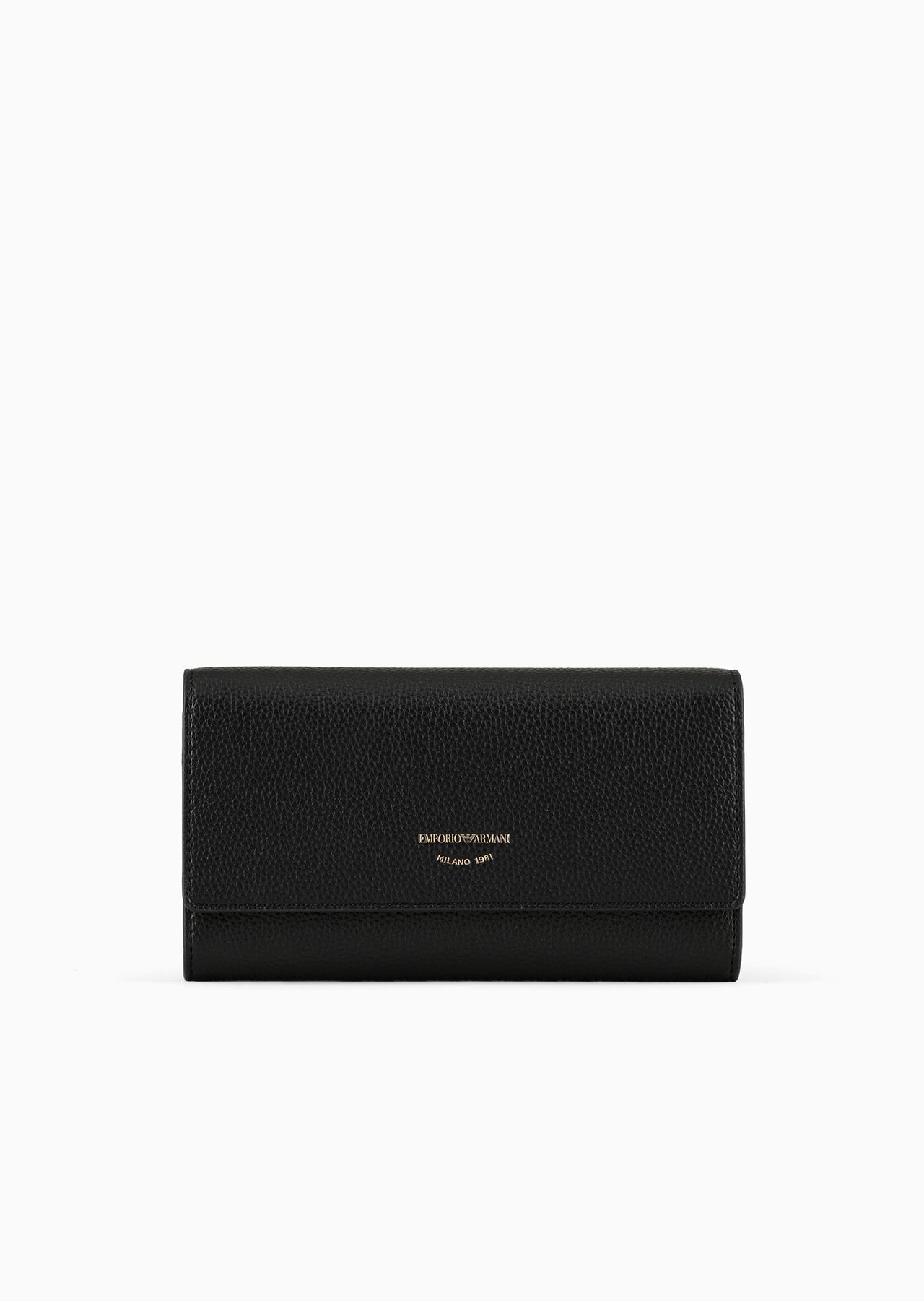 This wallet with deer-print finish is designed with an internal gusseted structure and practical zip coin purse. A distinctive, silk-screen Emporio Armani logo is the standout feature of this must-have everyday accessory. This item belongs to the MyEA line, the selection of iconic and exclusive Emporio Armani bags that are most representative of the label. Coordinate this exclusive accessory with your MyEA bag. This item is also part of the Essentials selection, making it a statement of enduring style: both elegant and practical, it works in numerous combinations on a wide array of occasions. Product Code: Y3H170YVZ7B180001 Details Composition 100% Polyester Measurements: 19 x 10 x 0.5 cm Deer-print finish Solid coloured Silkscreen logo Flap closure Inner pockets