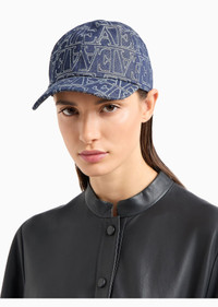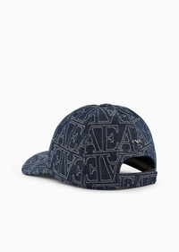 Cotton denim baseball cap. The jacquard EA logo covers the entire accessory and adds distinction, replicating the texture present in this season’s ready-to-wear collection. Product Code: 6373544F507101831 Details Composition 100% Cotton Denim Jacquard logo Rigid visor Adjustable Velcro at the back Made in Italy