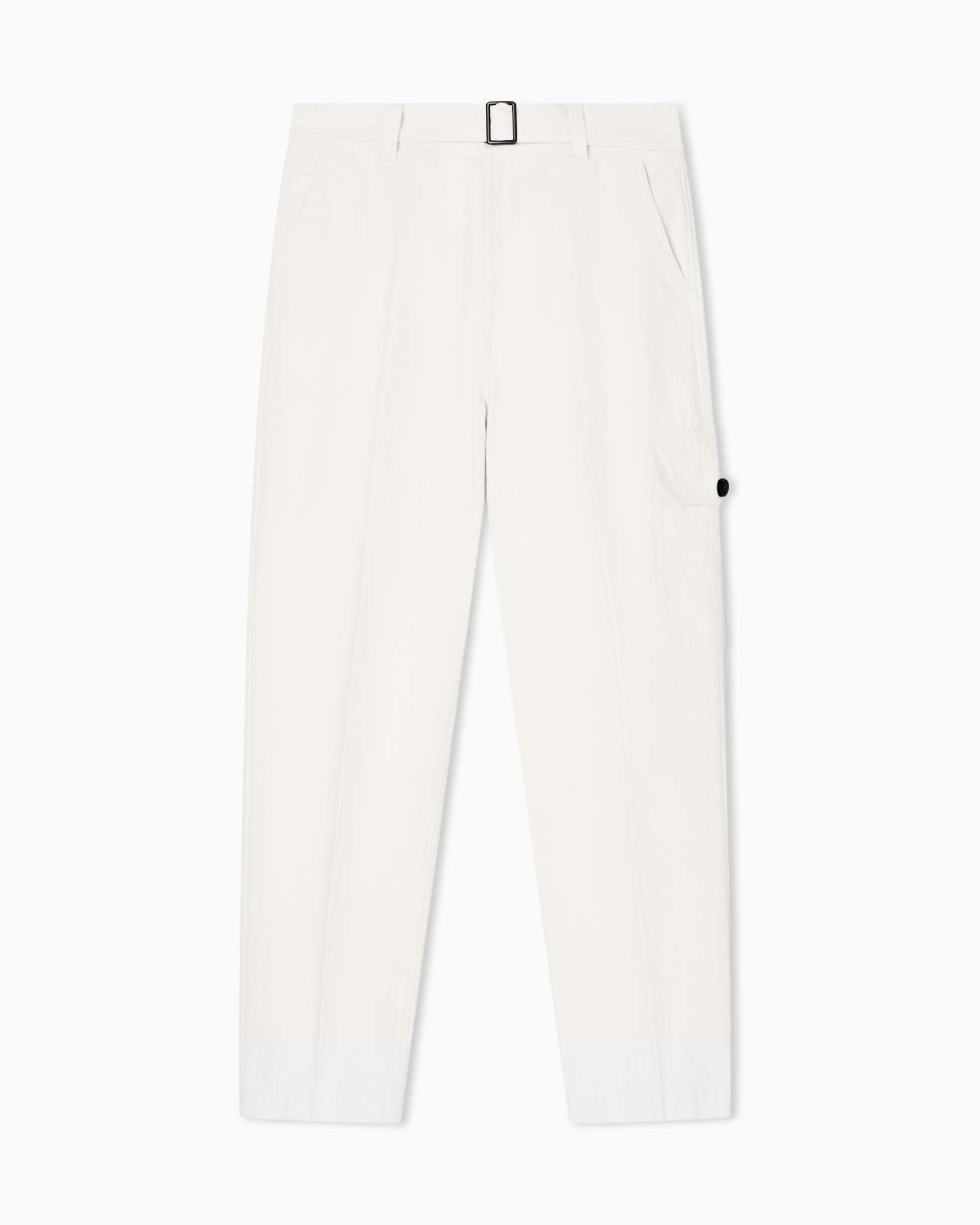 Cargo trousers in a particularly stiff, unyielding twill fabric, with a finish similar to that of denim. The matching belt at the waist and the oversized side patch pocket give the garment a more urban look. Twill Waist with belt loops Matching belt Zip and button closure Side pockets Side patch pocket with flap and button Back welt pockets with flap and button Product Code: EM003641AF17817U0003