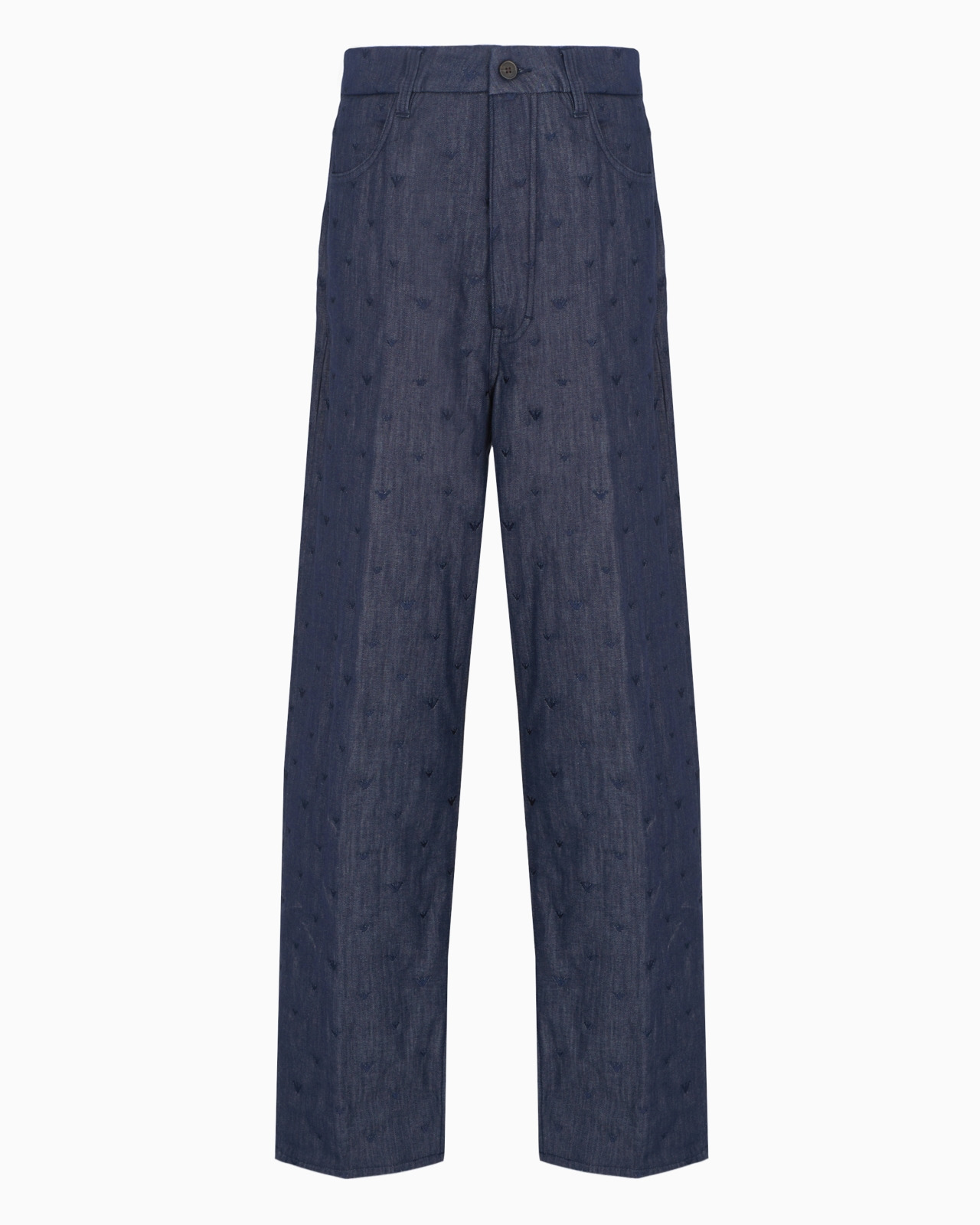 DENIM JEANS WITH ALL-OVER MICRO-EAGLE EMBROIDERY