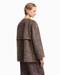 DOUBLE-BREASTED ANIMAL-PRINT WOOL-BLEND PEA COAT