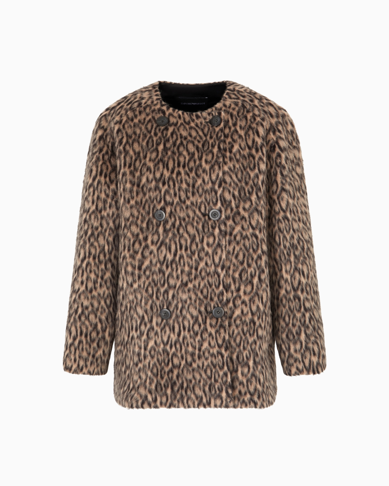 Double-breasted pea coat made from a wool and alpaca wool blend that gives the fabric a cosy fur effect. The design with a flap at the back has a sophisticated animal print that elevates the exclusiveness of the garment and lends itself to completing multiple outfits with an easy-chic feel. Animal print Crew neck Double-breasted Long sleeves Side pockets Back storm flap Unlined garment Product Code: EW001383AF14730F1118