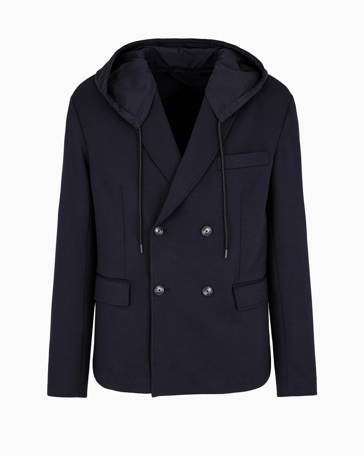 Double-breasted blazer in a soft wool-blend cloth with a nylon hood